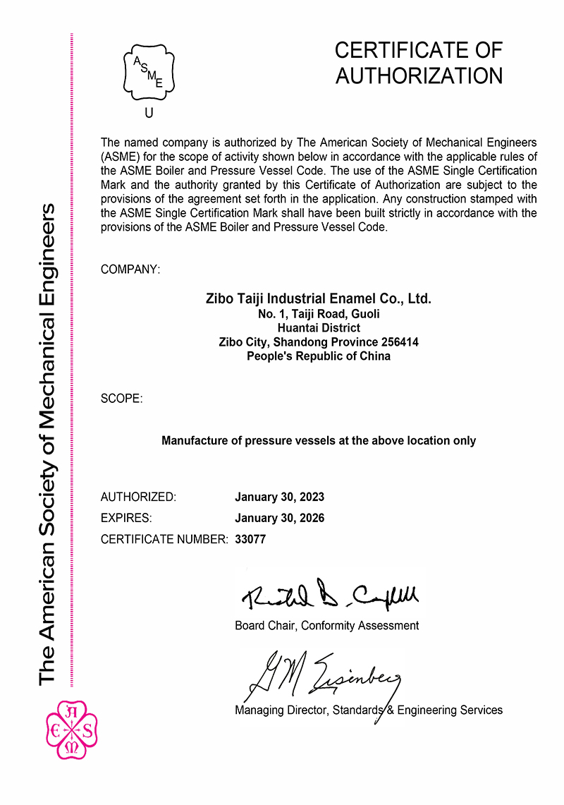 HOW TO CHOOSE淄博太極工業(yè)搪瓷有限公司專業(yè)制造搪玻璃設(shè)備、氟塑料設(shè)備及碳鋼、不銹鋼壓力容器的大型企業(yè)。現(xiàn)有員工1000余人,注冊(cè)資金11900萬(wàn)元,占地600畝,生產(chǎn)車間19萬(wàn)平米,凈資產(chǎn)超20億元。太極以人為本,單用于職工的居住生活投入已達(dá)3億,使工者有其房,家人生活及孩子....[查看更多]